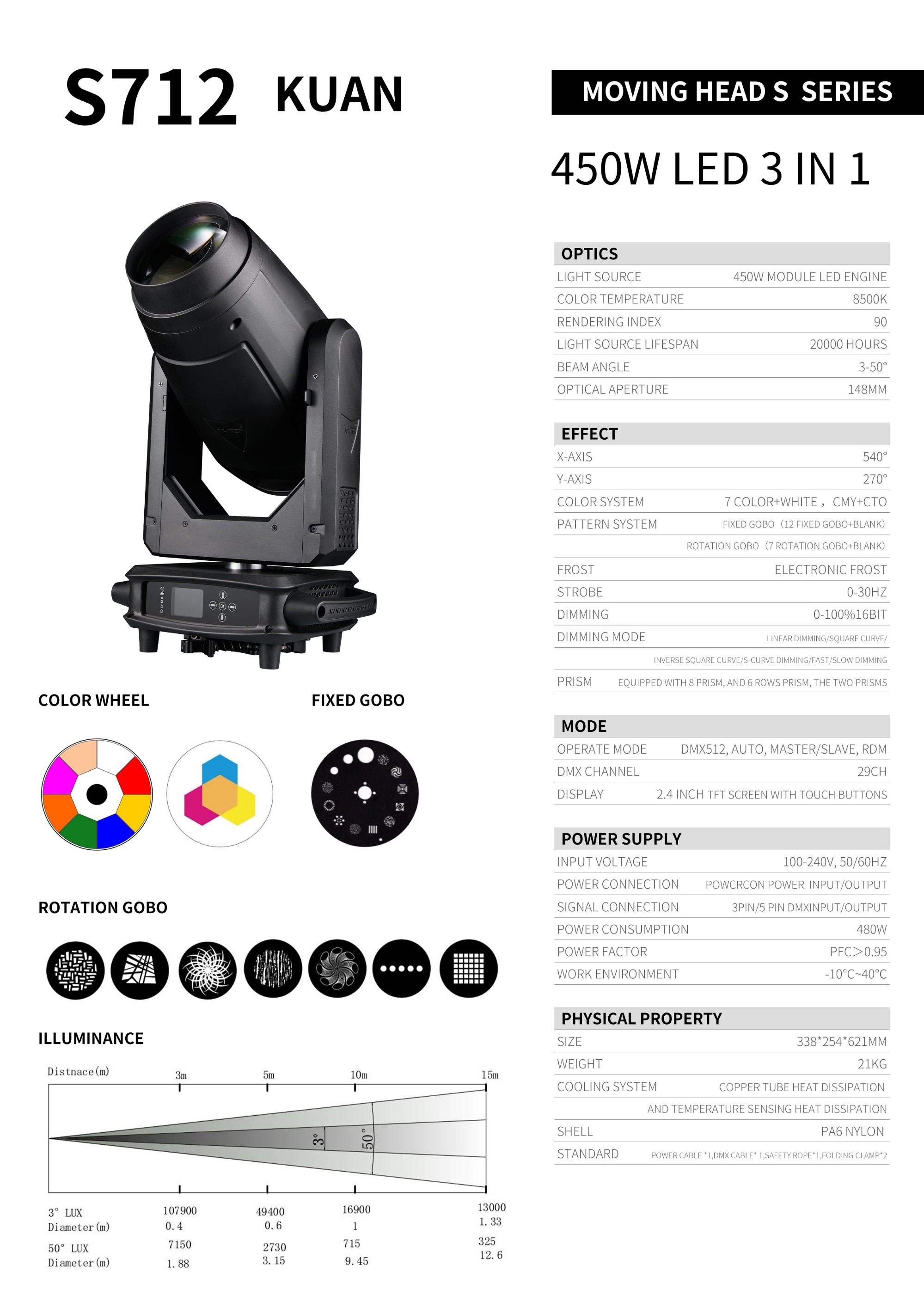 V-Show S712 Kuan CMY & CTO Beam Spot Wash 3in1 Moving Head Lights LED 450w 3in1 Moving Lights For DJ Stage